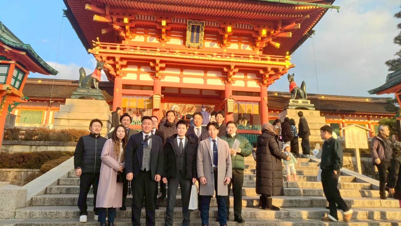 また、道中では京都・伏見稲荷大社に参拝し、家庭や仕事、そして青年会議所の事業が本年も実りあるものとなるよう、それぞれが心を込めて祈願してまいりました。