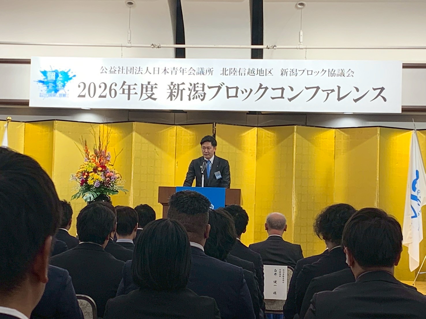 去る二月一日(日)に新潟ブロックコンファレンスが新潟グランドホテルにて開催されました。私は本年度水戸部ブロック会長のもと、個の育成委員会の委員長として出向させていただいており、今回のブロックコンファレンスはブロック委員長として初めての事業となりました。まずは妙高JCから参加していただいたメンバーの皆様、当日は悪天候の中遠い新潟の地までお越しいただき本当にありがとうございました。式典はというと、多少の反省点も見つかりましたが、大成功に終えることができました。各地会員会議所のメンバーの前で一年間の事業方針を発表する場があり、大変緊張しましたがいい経験になりました。式典後はアカデミーメンバー向けに事業を行い、こちらも妙高からも多くのメンバーに参加していただきました。重ねて御礼申し上げます。まだ一年がスタートしたばかりですが、ブロックでたくさんの学びを得て、この貴重な経験をLOMに還元できるように精進して参ります。